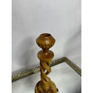 Vintage Hand Carved Olive Wood Open Spiral Candlesticks Candle Holders