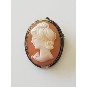 Vintage Hand Carved Shell Victorian Lady 800 Silver Pendant and Earring Set