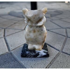 Vintage Hand Carved Speckled Alabaster Owl Marble Base Figurine