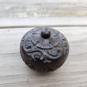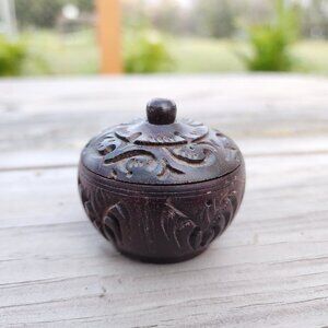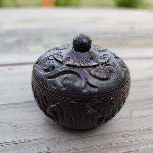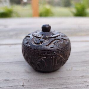 Vintage Hand Carved Turned Covered Round Wooden Lidded Container MCM Box