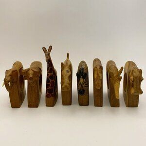 Vintage Hand Carved Wood African Safari Napkin Ring Holders 8pc