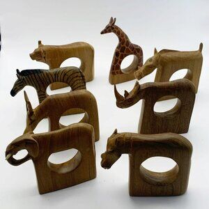 Vintage Hand Carved Wood African Safari Napkin Ring Holders 8 pc Set