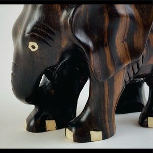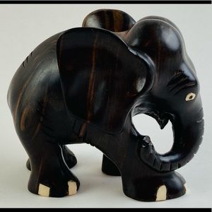 Vintage Hand Carved Wood Elephant W/ WhiteToe Nail