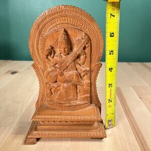 Vintage Hand Carved Wood Hindu Goddess Saraswati Figure Statue 7.5” See Note