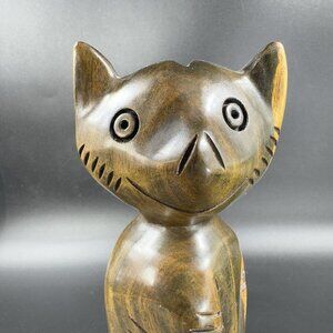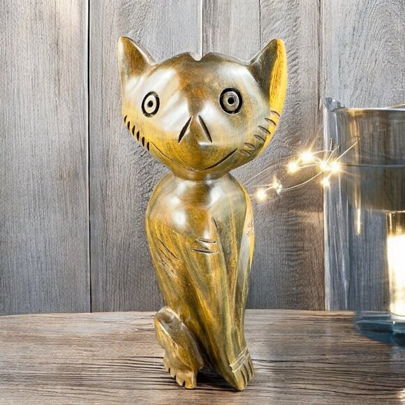 Vintage Hand Carved Wood Kitty Cat Sculpture Figurine Hand Made Decor Cat VTG