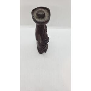 This vintage hand-carved wood sculpture features a woman working in an ethnic style. The intricate details of the sculpture make it a unique and beautiful piece that will add character to any space. Made from high-quality wood, this sculpture is a perfect addition to any collection of decorative collectibles. The sculpture is perfect for those who appreciate the beauty of art and want to add a touch of ethnic flair to their home decor.