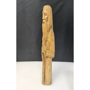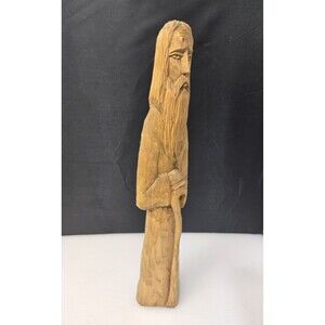 features of his face, long beard and hair, and stately, standing posture. A true piece of folk art, showcasing the skill and dedication of the carver.
