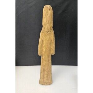 Bring a piece of timeless artistry and spiritual history into your home with this striking vintage Hand-Carved Wood Religious Figure Statue.