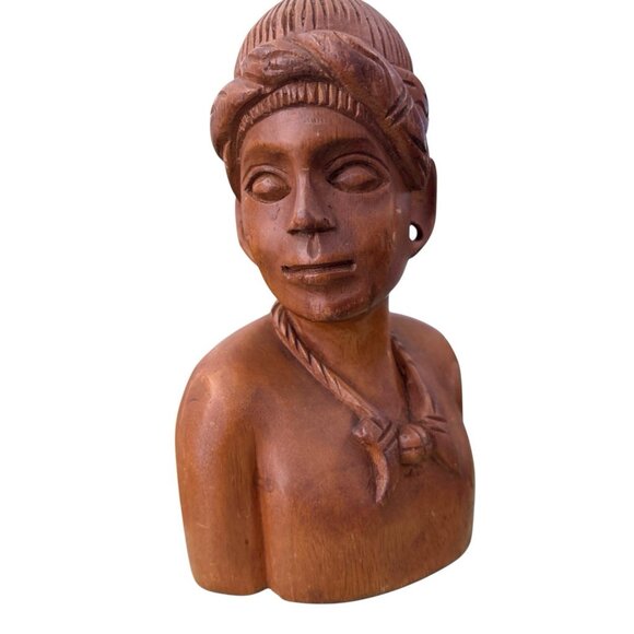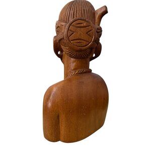 Vintage Hand Carved Wooden Bust Solid Wood Primitive Native Tribal Figure