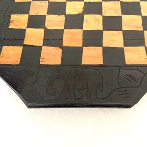 Vintage Hand Carved Wooden Chess Board Tanzania African Elephant Rhino