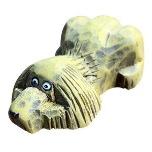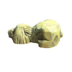 Vintage Hand Carved Wooden Dog Primitive Painted Laying Yellow Folk Art