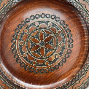 Vintage Hand Carved Wooden Plate Wall Art 9 1/2 Inch