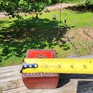 Vintage Hand Carved Wooden Polish Trinket Box With Intricate Circle & Swirl Desi