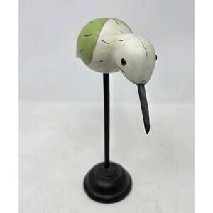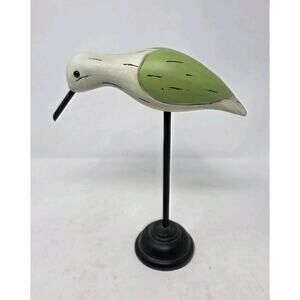 Vintage Hand Carved Wooden Shore Bird Hand Painted Long Billed Curlew Green