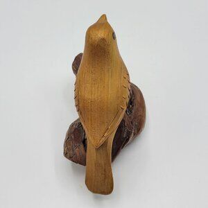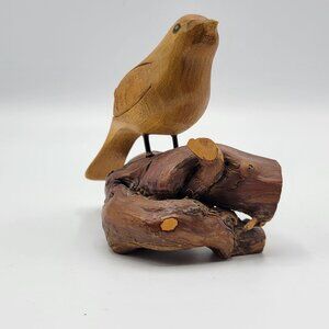 Vintage Hand Carved Wooden Wood Bird Sculpture Figure On Driftwood Stand