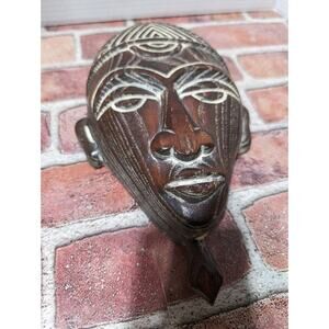 Add a touch of African culture to your home with this vintage hand-carved wooden tribal mask hanging wall decor. The intricate design and attention to detail make this piece a true work of art. The mask is handmade and so unique. It's solid wood.