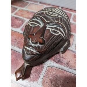 Vintage Hand Carved Wooden Wood Tribal Mask Hanging Wall Decor 10.5 in x 6 in