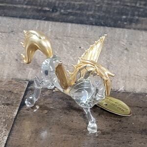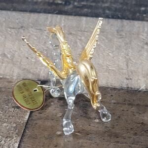 Vintage Hand Crafted Glass Pegasus Dipped in 14K Gold 3" Long 2.25" High