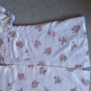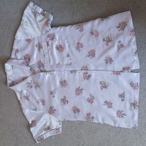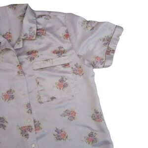 Vintage Hand Crafted Floral Silky Button Down PaJama Top