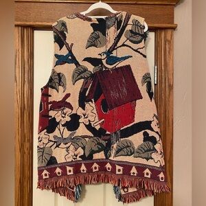 Vintage Handcrafted Women’s Blanket Vest Bird Birdhouse Motif Sz OS