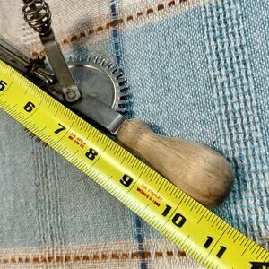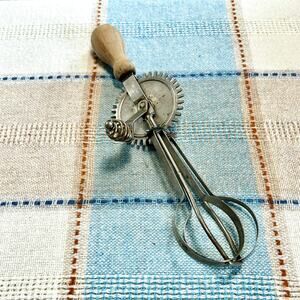 Vintage Hand Crank Egg Beater – Made in USA, Metal & Wood Handle Mixer
