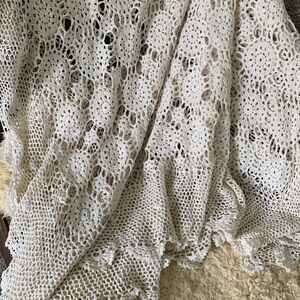 Vintage Hand Crochet Lace Bedspread Coverlet Afghan table cover blanket cream