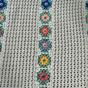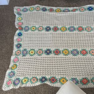 Vintage Hand Crocheted Granny Floral Cottagecore Boho Throw Blanket Afghan