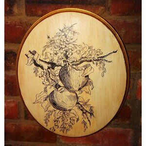 Vintage Hand Drawn Apples Berries & Leaves Wall Hanging on Wood farmhouse decor