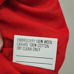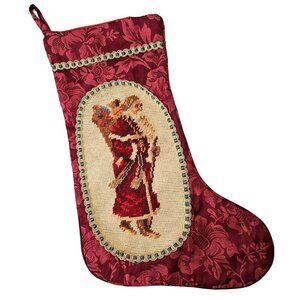 Vintage Hand Embroider Christmas Stocking Wool St Nicholas Needlepoint on Cotton