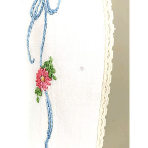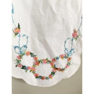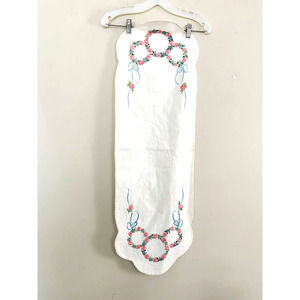 Vintage Hand Embroidered 3 Floral Rings on Ends Dresser Scarf Runner 41" x 13"