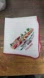 Excellent condition white Handkerchief with burgundy border & Holland scenic embroidery. 10 inch square.