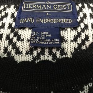 Vintage Herman Geist houndstooth hand embroidered sweater.