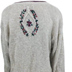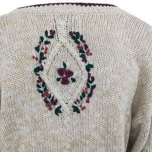 Vintage Hand Embroidered V-Neck Cardigan Sweater Size XL Christopher & Banks