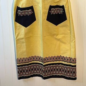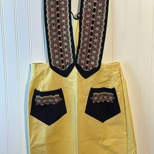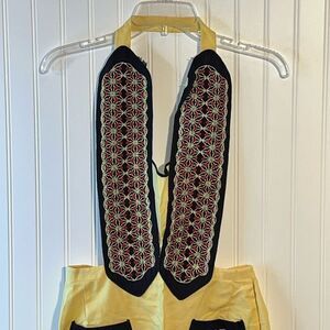 Vintage Hand Embroidery Cross Stitch Bib Apron Yellow Black Holland Cottage Cor
