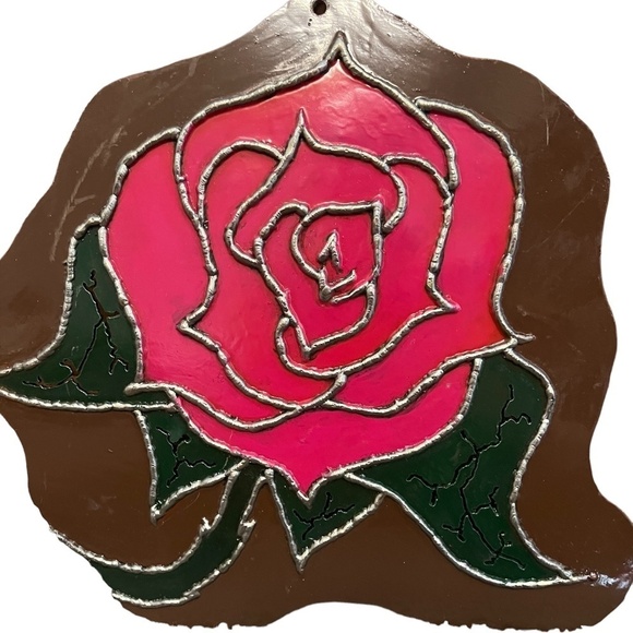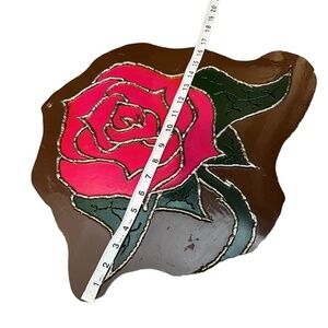 Vintage Hand Forged Red Rose And Hand Painted On Metal Wall Art