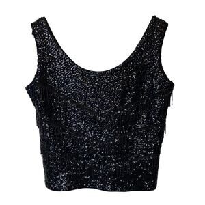 Hand Full Fashioned Vintage Wool Beaded Sequin Sleeveless Black Top