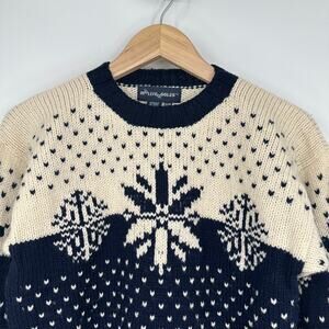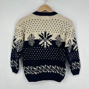 Vintage Hand Knit 100% Wool Molly Googles Sweater Fair Isle Snowflake Crewneck
