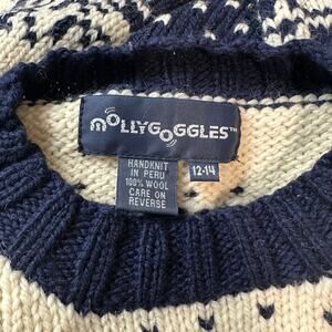 Vintage Molly Googles 100% Wool Sweater Fair Isle Snowflake Crewneck Chunky Knit