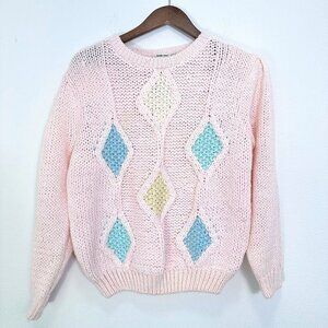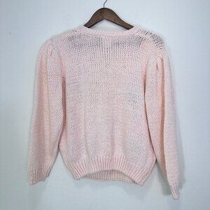 Vintage Hand Knit Colter Bay Pink Grannycore Pink Loose Knit Crewneck Sweater L