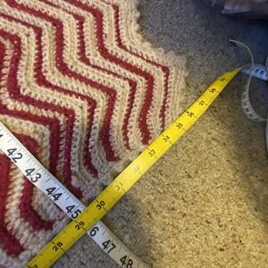 Vintage Hand Knit Crochet Blanket Throw Afghan 38x45” Red Gray Chevron Cottage