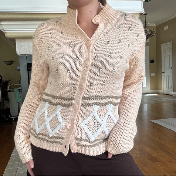 Vintage Hand Knit Grandma Cottagecore Cardigan Fishermans Sweater Small
