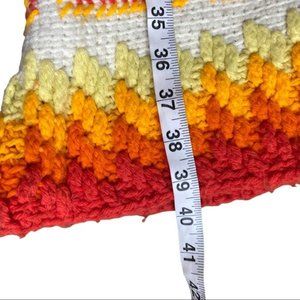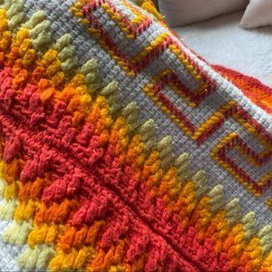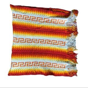 Vintage 90s 1990s south western warm color hand knit fringe throw blanket