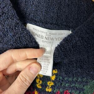 Vintage Hand Knit Jones New York Tartan Plaid Wool Sweater Men's Large