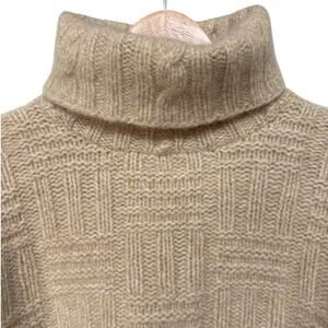 Vintage Hand Knit Lambswool Angora Blend Cropped Turtleneck Sweater size S/M