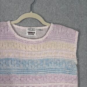 Suburban Petites Vintage Hand Knit Top Small Sweater Vest Sheer Soft Girl Pastel Festival Grandma 90s 80s Retro Colorful Beach Vacation Resort Coastal Cruise Blue Purple Yellow Pink Preppy Nautical Artsy Twee Quirky