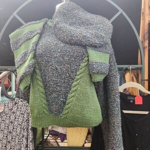 Vintage Hand Knit Sweater-Sage Green Two Tone-Sweater, Leggings & French Hat Set