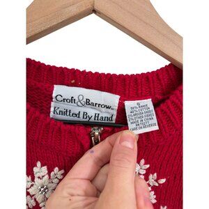Vintage Hand Knit "Ugly" Christmas Holiday Snowflake Snowmen Sweater
