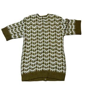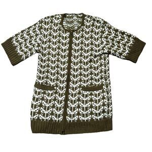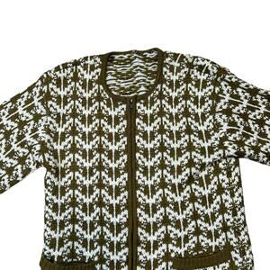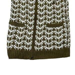 Vintage Hand Knit Zipper Cardigan Olive Green And White Small