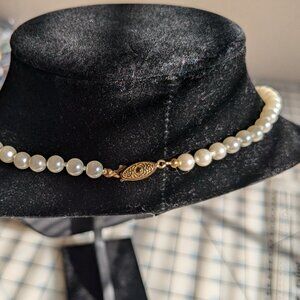 Vintage Hand Knotted White Czech Glass Pearl Bead Necklace Fancy Clasp 24