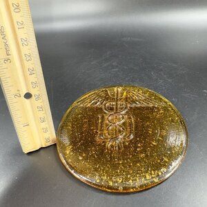 Vintage Hand Made Amber Medical Sign Decorative Plate Dish With Small Bubbles